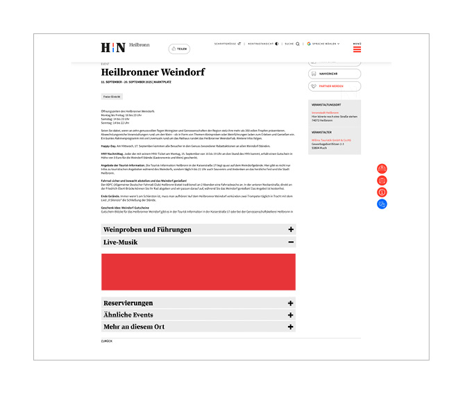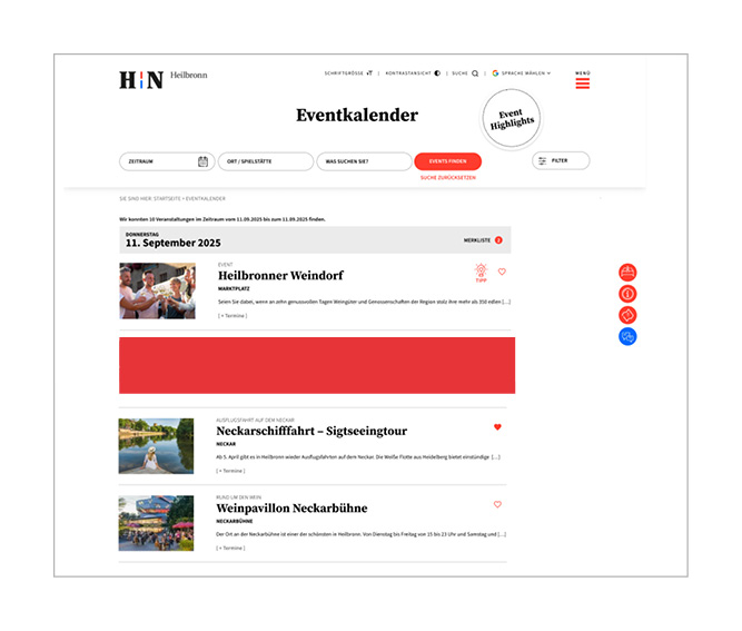 Der Online-Veranstaltungskalender der Stadt Heilbronn zählt zu den reichweitenstärksten lokalen Online-Plattformen für Freizeit- und Veranstaltungssuche in Heilbronn. Er verzeichnete im Jahr 2024 über 650.000 Seitenaufrufe. Ein Großteil davon durch Nutzer aus Heilbronn und der näheren Umgebung.