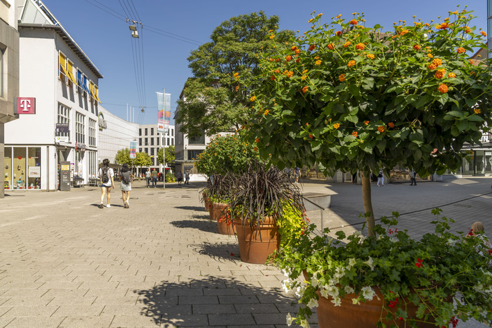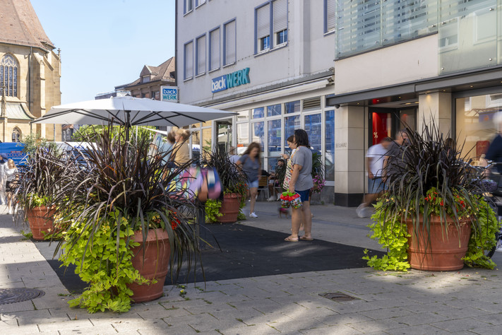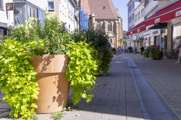 Die Pflanzkübel zeigen: Auch kleine Veränderungen bringen Farbe in die Stadt. So wächst die Heilbronner Innenstadt Stück für Stück zu einem grüneren und lebendigeren Ort heran.
