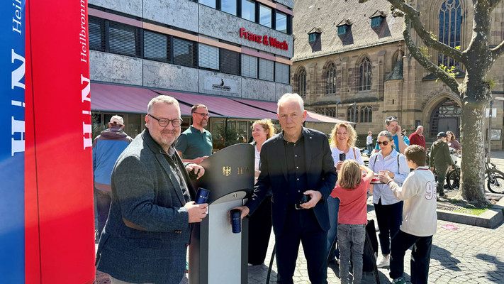 Eine Bereicherung für die Innenstadt: die beiden im Mai eingeweihten Trinkbrunnen auf dem Marktplatz und dem Kiliansplatz. In der warmen Jahreszeit bieten sie allen Besucherinnen und Besuchern der Innenstadt die Möglichkeit, sich kostenlos mit Trinkwasser zu versorgen. Foto: Stadt Heilbronn/M.-K. Klöppel
