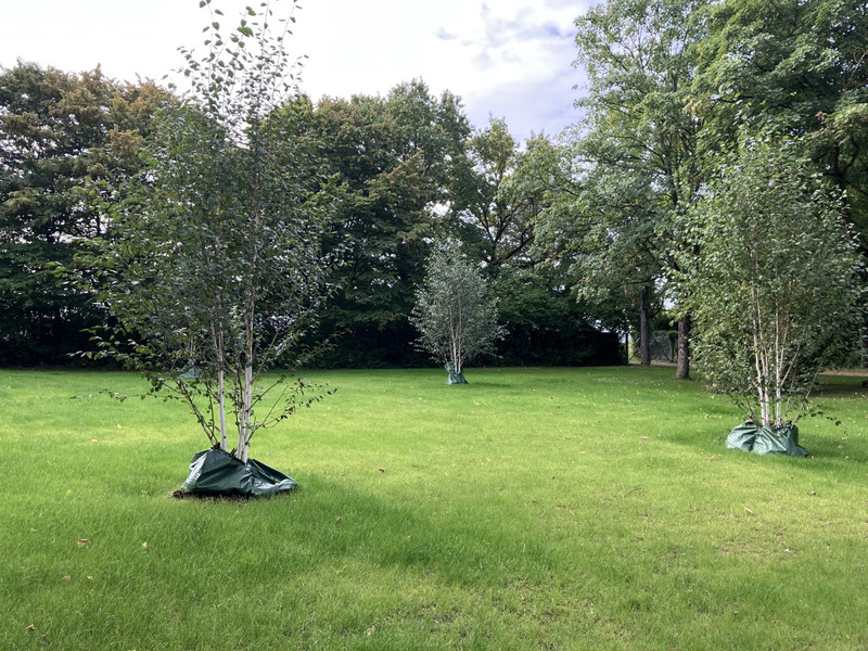Hain mit Himalaya-Birken und Rasenfläche als Standorte