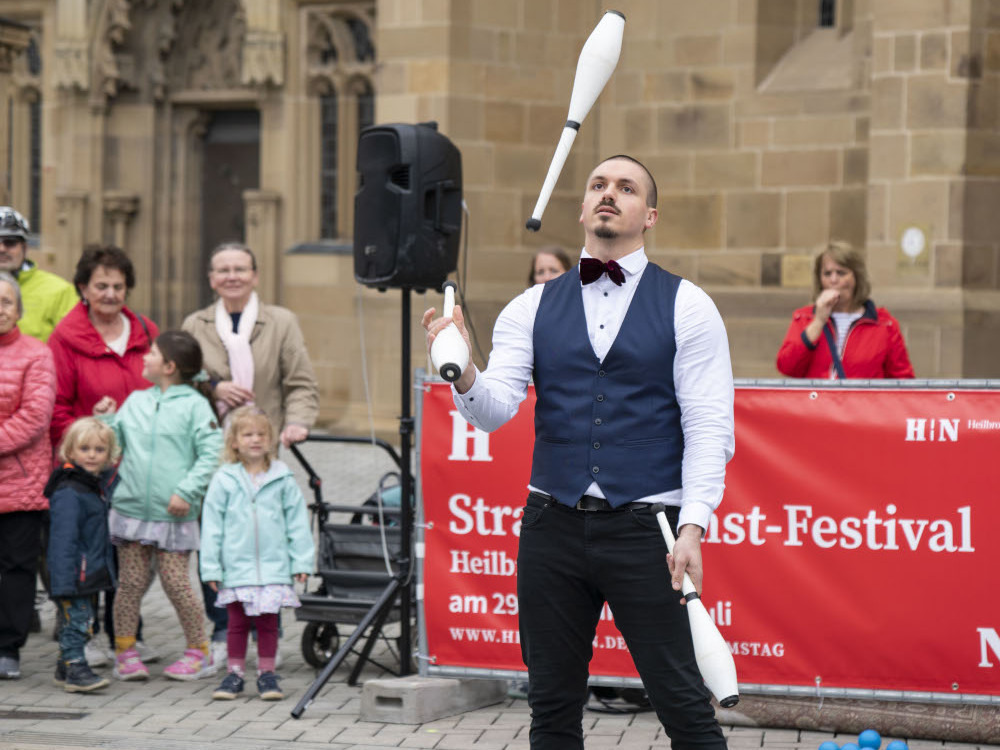 Mit vielen verschiedenen Genres und einem bunten Programm verwandelt sich die Heilbronner Innenstadt am Samstag, den 26.07.2025, in ein Straßenkunst-Festival der besonderen Art. Zwischen 12:30 und 19:30 Uhr können sich die Besucher von Akrobaten, Jongleuren, Clowns und vielen mehr verzaubern lassen. Zum Abschluss des Tages wird eine Parade aller Künstler stattfinden. Nähere Informationen zu den Künstlern sowie den Spielorten und -zeiten können Sie hier nachlesen.