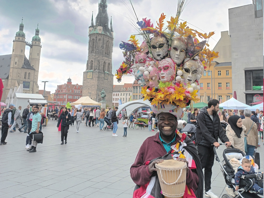 | Gregory da Silva, der berühmte Eiermann aus Afrika, ist Komiker, Künstler und Rekordhalter. 2015 landete er mit einem Eierhut, der 735 Eier fasste, erneut im Guinness-Buch der Rekorde. Mit seinen frischen Eierhüten, die er für jede Show neu kreiert, verbreitet er positive Energie mit Eiern, die in der afrikanischen Kultur Symbol für Leben und Glück sind. |