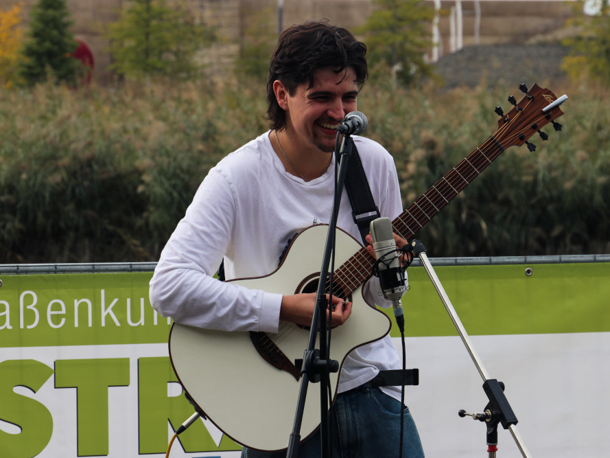 | Die Band Handbuch fällt heute leider aus, als Ersatz springt Borna ein. Borna spielt seit Jahren auf den Bühnen in und um Stuttgart – angefangen hat alles mit Straßenmusik. In seinen deutschsprachigen Songs präsentiert er die Fundstücke seines Lebens heiter bis nachdenklich mithilfe seiner Gitarre und dem Einsatz von Stompbox und Mundharmonika. Seine Darbietung ist authentisch und spannend: die Begegnung zwischen Künstler und Zuhörer erschafft den einen oder anderen spontanen Song. Das geht nirgends besser als auf der Straße. |