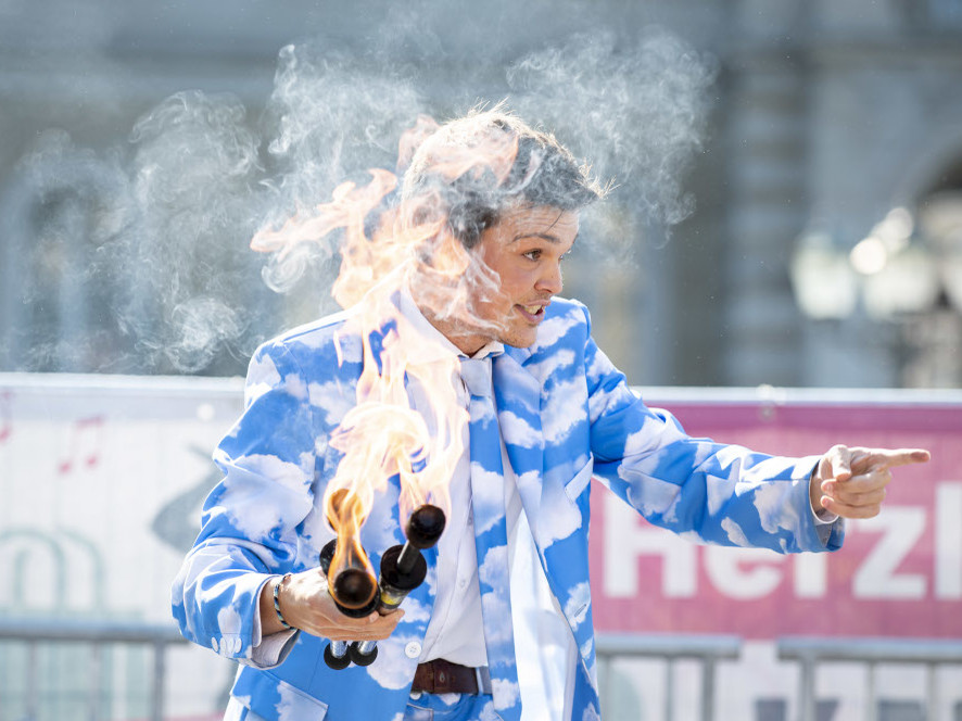 | David Finscher begeistert als Clown „Pipo“ mit seinem "Grande Concerto" – einer einzigartigen Mischung aus Musik, Jonglage und Humor. Mit Leichtigkeit entwirrt er die kleinen Tücken des Lebens und bringt sein Publikum zum Staunen und Lachen. Freuen Sie sich auf Poesie, Präzision und unvergesslichen Spaß! |