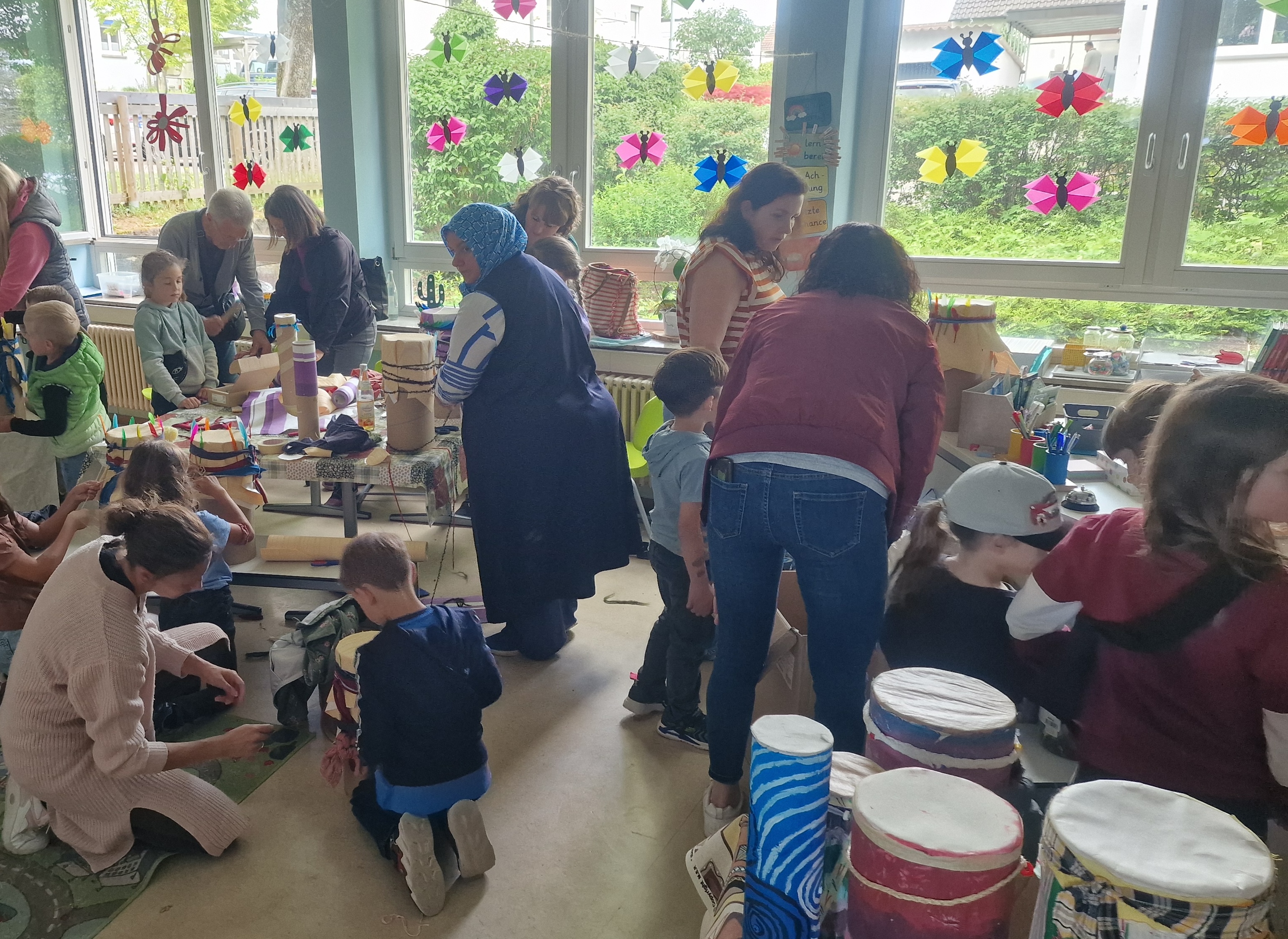Der interkulturelle Trommel-Workshop für Grundschulkinder und Kindergartenkinder will Werte wie Gemeinschaft, kulturelle Vielfalt, Inklusion und demokratische Teilhabe vermitteln – kreativ erlebbar gemacht durch Musik. Am 23.05. & 27.05. lernen die Teilnehmenden einfache Rhythmen auf afrikanischen Trommeln und reflektieren über Themen wie Zusammenhalt, Mitbestimmung und Nachhaltigkeit. Zusätzlich wird ein Upcycling Workshop für die Grundschülerinnen und Schüler angeboten, in dem sie selbst eine Trommel basteln und gestalten können.