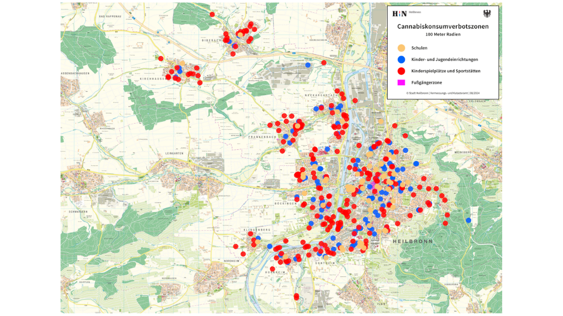 Um einen besseren Überblick über die zahlreichen Verbote zu ermöglichen und die Polizei bei ihrer Kontrolltätigkeit zu unterstützen, hat das Ordnungsamt der Stadt Heilbronn eine Karte erstellen lassen, in der die entsprechenden Verbotszonen eingezeichnet sind. Verstöße gegen die öffentlichen Konsumverbote werden mit hohen Bußgeldern geahndet.
