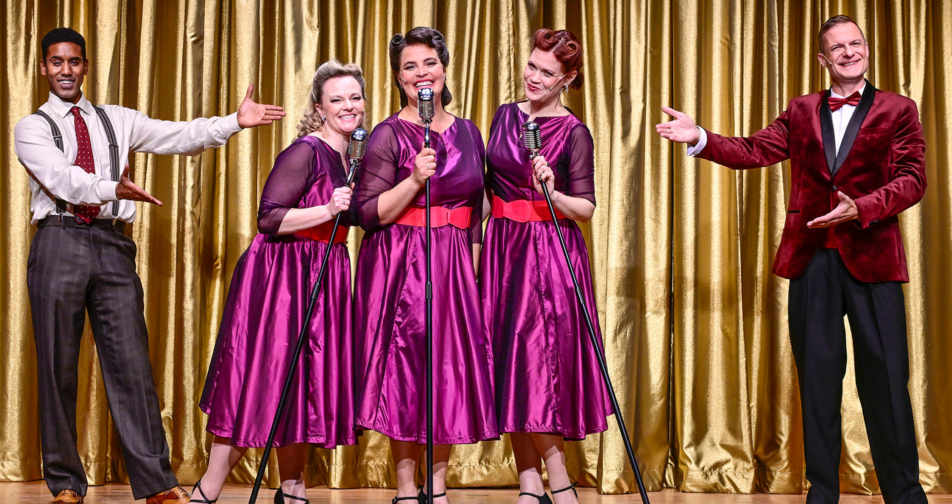 "The Andrews Sisters" waren eine legendäre US-amerikanische Girlgroup und mit über 70 Millionen Platten die ersten echten "Superstars". Sie stehen für Swingmusik der Extraklasse, Boogie-Woogie, Jazz und Pop gepaart mit südamerikanischem Temperament. Gegründet in den 30er-Jahren erobert das Schwestern-Trio, bestehend aus LaVerne, Maxene und Patty, die Musikwelt. Als die Gruppe ihre Karriere begann, war Patty, die jüngste der drei Schwestern, gerade einmal sieben Jahre alt. Ihre Hits wie »Bei mir bist Du schön«, »Boogie Woogie Bugle Boy« und "Rum and Coca-Cola" sind unsterblich und bringen noch heute die Menschen zum Tanzen. Die Musik begeistert nach wie vor durch ihren Mix aus mehrstimmigem Gesang, swingenden Beats und pulsierenden Rhythmen. Als erste weibliche Vokalgruppe gewinnen die Andrews Sisters 1938 für "Bei mir bist Du schön" eine goldene Schallplatte. Sie singen im Zweiten Weltkrieg für amerikanische Soldaten und treten gemeinsam mit Stars wie Bing Crosby und dem Glenn Miller Orchestra auf. In 17 Kinofilmen wirken sie mit und spielen sich dort meistens selbst. Die Komödie im Marquardt widmet diesen Pionierinnen, die ganze Generationen von Frauen in Pop, Rock und Jazz beeinflusst haben, einen Theaterabend mit viel Musik, der als Gastspiel im Heilbronner Komödienhaus zu sehen sein wird. Das Stück erzählt ihre Geschichte aus der Perspektive der jüngsten Andrews Sister Patty. Sie blickt zurück auf ihr Leben und erinnert sich noch einmal an all die Momente und besonderen Ereignisse in der Karriere der Andrews Sisters. Der Autor und Regisseur des Stückes, Murat Yeginer, lässt auf diese Weise die Andrews Sisters noch einmal lebendig werden. Er erzählt eine Geschichte über Musik, Liebe, Krieg, Hürden und Hoffnungen, gespickt mit vielen bekannten Hits.