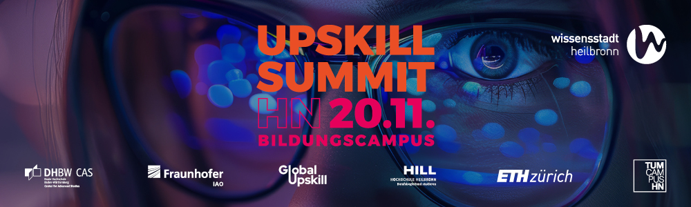 Erleben Sie die Zukunft der Weiterbildung! Gewinnen Sie Einblicke in aktuelle Trends, neue Technologien und praktische Anwendungsbeispiele der Transformation. Upskill Summit HN 2025 für Personalentwickler*innen, Führungskräfte und Weiterbildungsinteressierte. Präsentiert von führenden Forschungsinstituten und Bildungseinrichtungen aus der Wissensstadt Heilbronn.