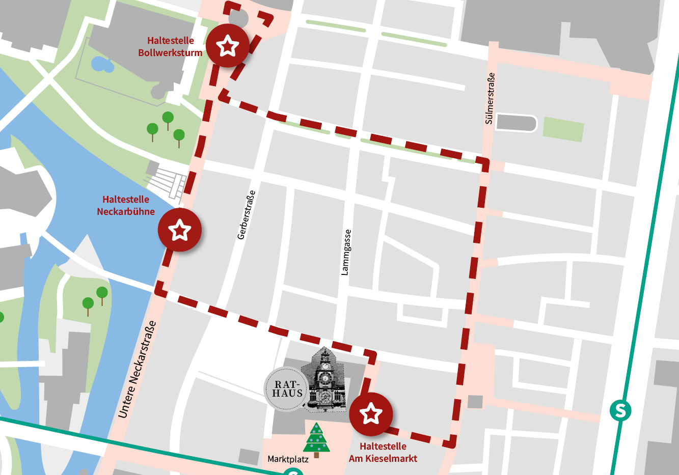 Der Käthchen Weihnachtsmarkt ist vom Heilbronner Hauptbahnhof fußläufig in nur 800 Metern gut zu erreichen.